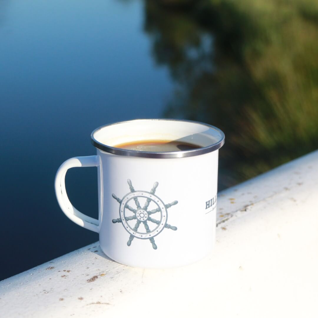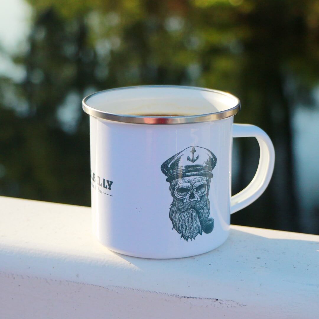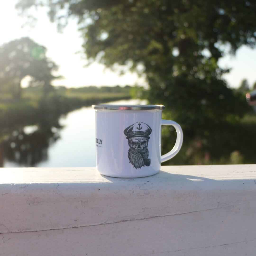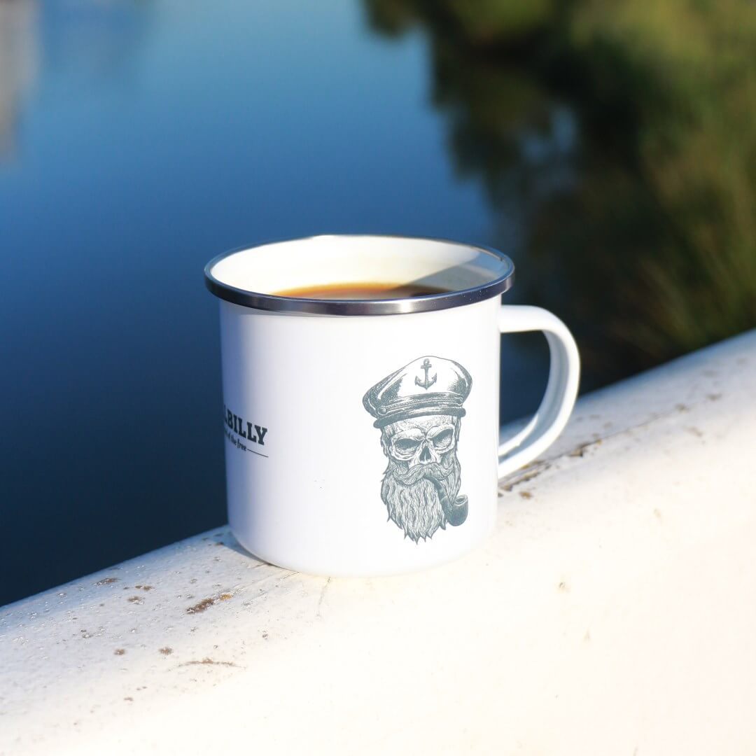 Produktinformationen "Emailletasse - SkullCaptain mit Steuerrad • 300ml"